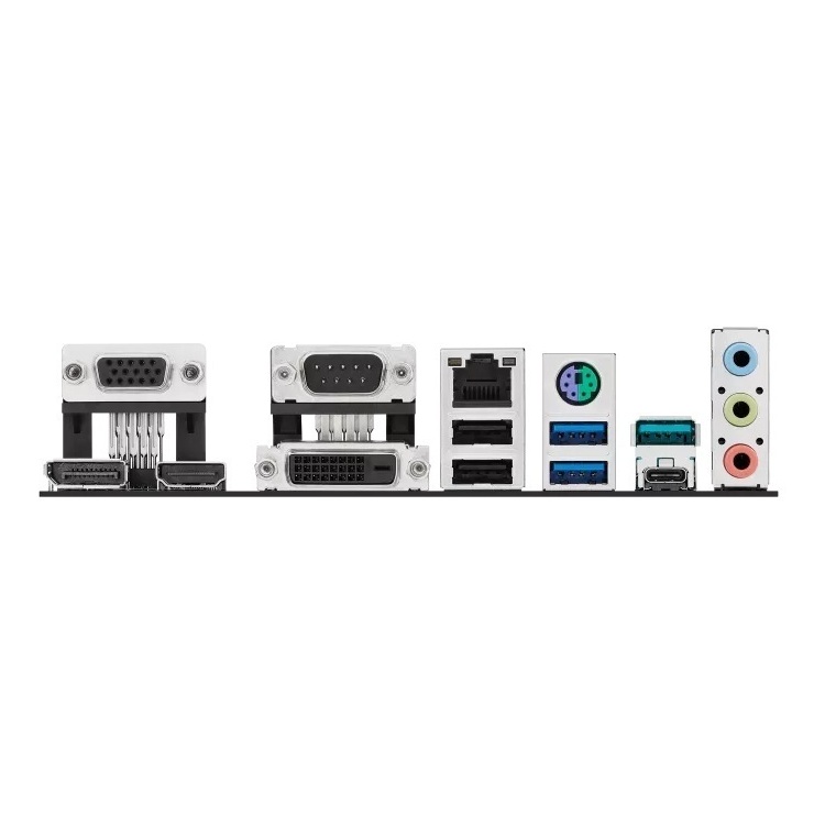 Supports 2 x M.2 slots and 4 x SATA 6Gb/s ports 2 x USB 10Gbps ports (1 x Type-A + 1 x USB Type-C) 2 x USB 5Gbps ports (2 x Type-A) 2 x USB 2.0 ports (2 x Type-A) 1 x DisplayPort 1 x VGA port 1 x DVI-D port 1 x HDMI port 1 x Intel 1Gb Ethernet port 3 x Audio jacks 1 x COM port 1 x PS/2 keyboard/mouse combo port https://www.asus.com/motherboards-components/motherboards/business/pro-h810m-c-csm/techspec/
