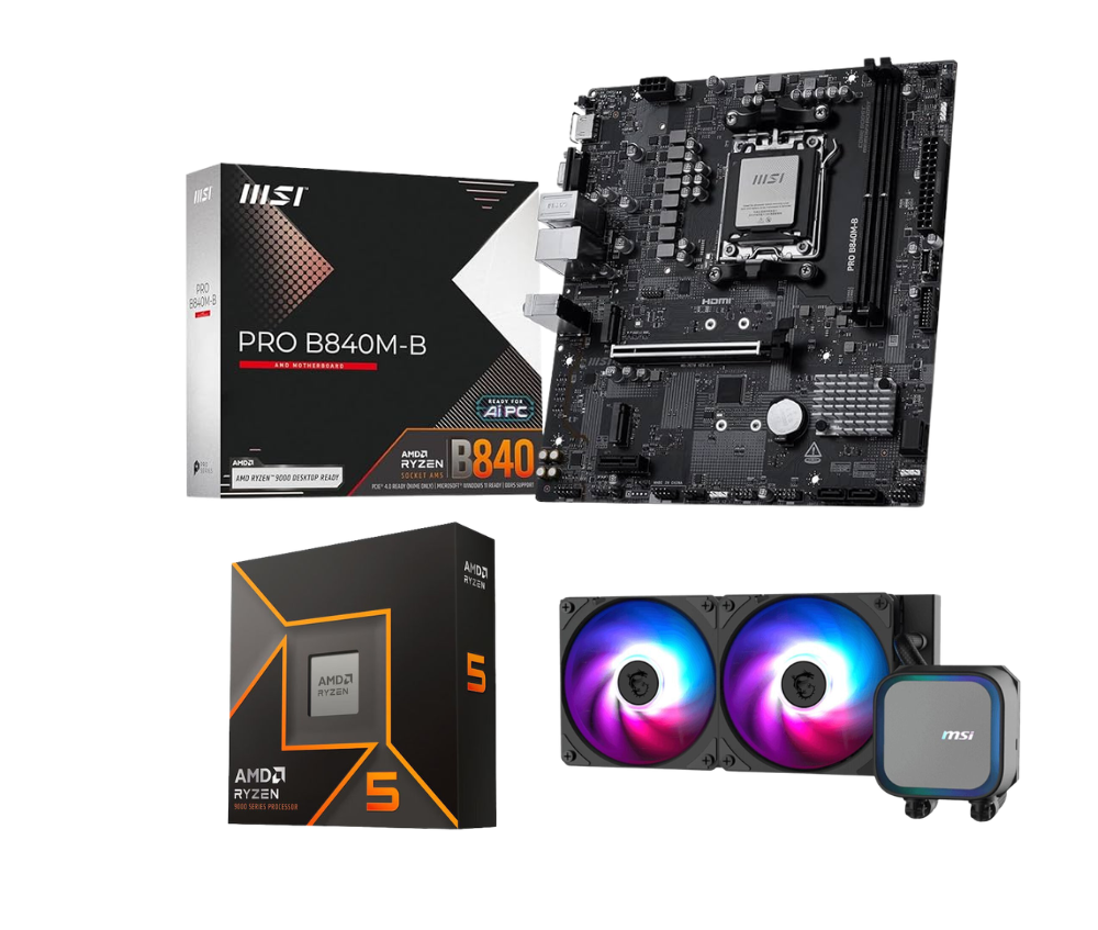 Περιλαμβάνεται Ryzen 5-9600X BOX , μητρική MSI PRO B840M-B & AM5 Liquid Cooler MSI MAG CORELIQUID A13 240.
